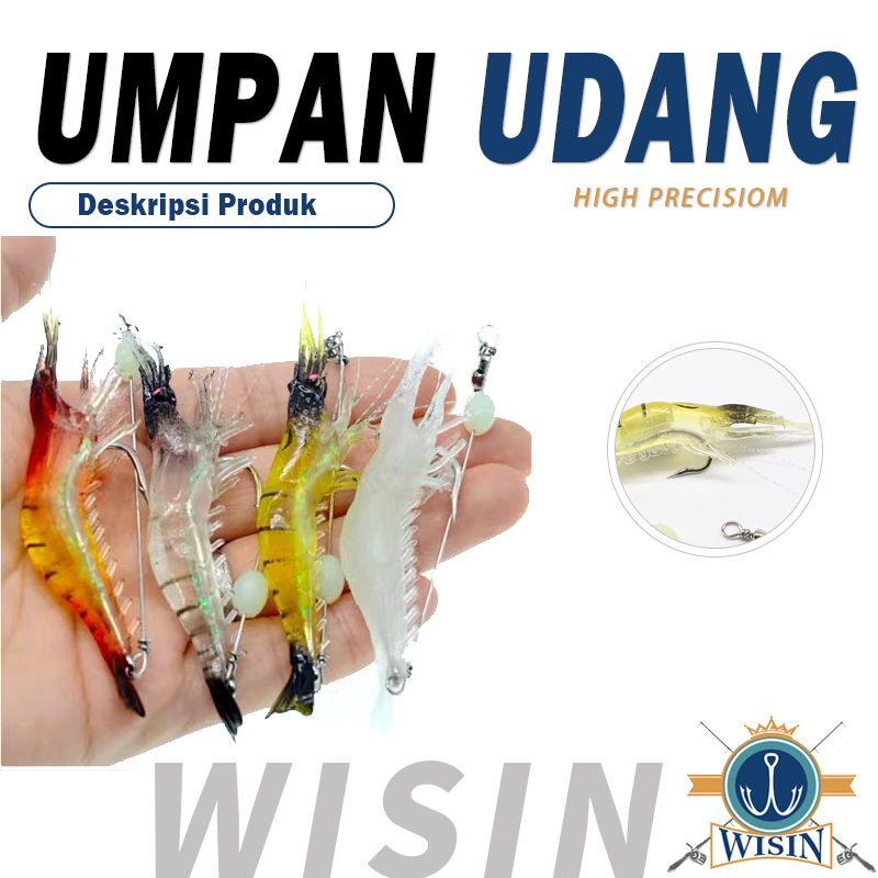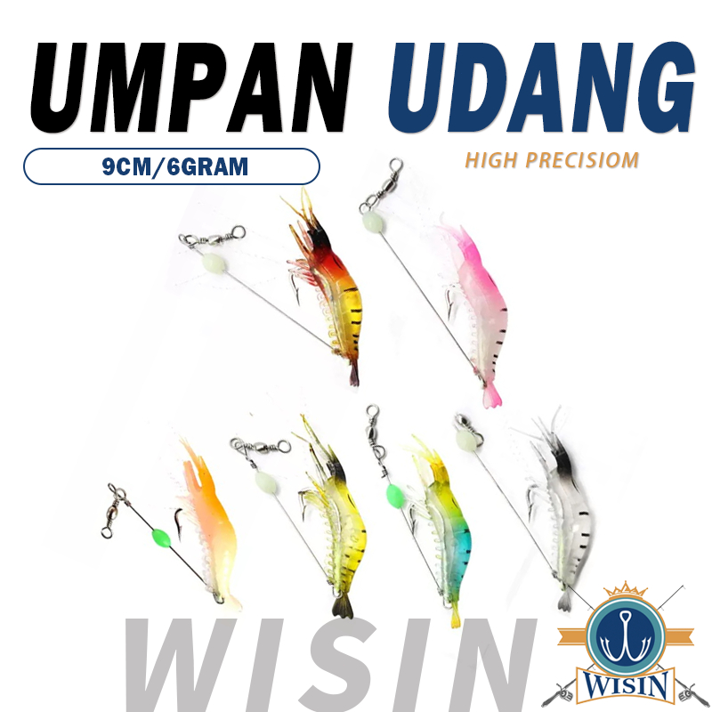 UMPAN UDANG BERCAHAYA KARET SOFT LURE 9cm 6gram LENGKAP KAIL KILI