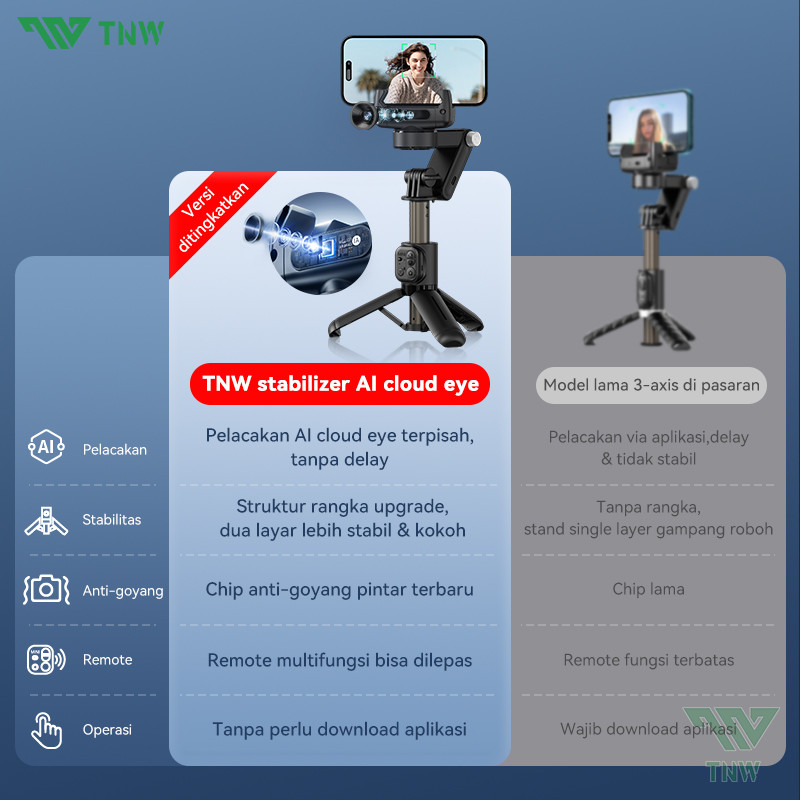 Tnw Q19 Ai Gimbal Stabilizer Auto Face Tracking Stabilizer Bluetooth Remote Control Tongsis Tripod