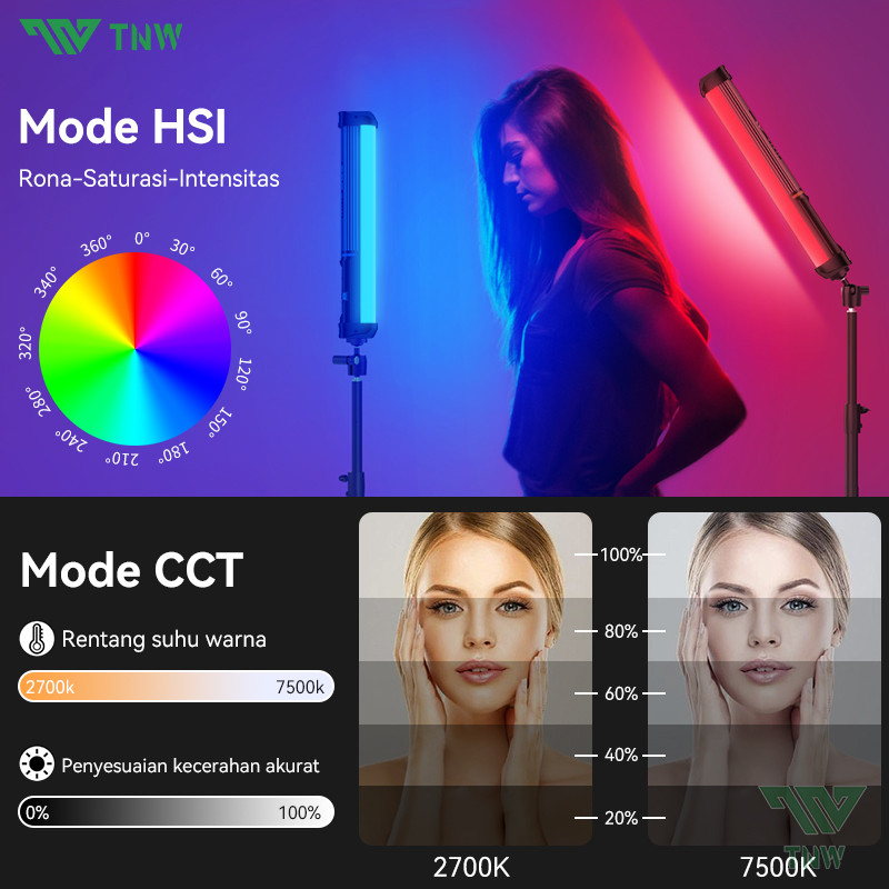 Tnw Rl60 Rgb Handheld Light Led Lampu Stick Light Lampu Tube Fotografi Led Lampu Video Lampu Kamera Hp Portable Lampu Ko