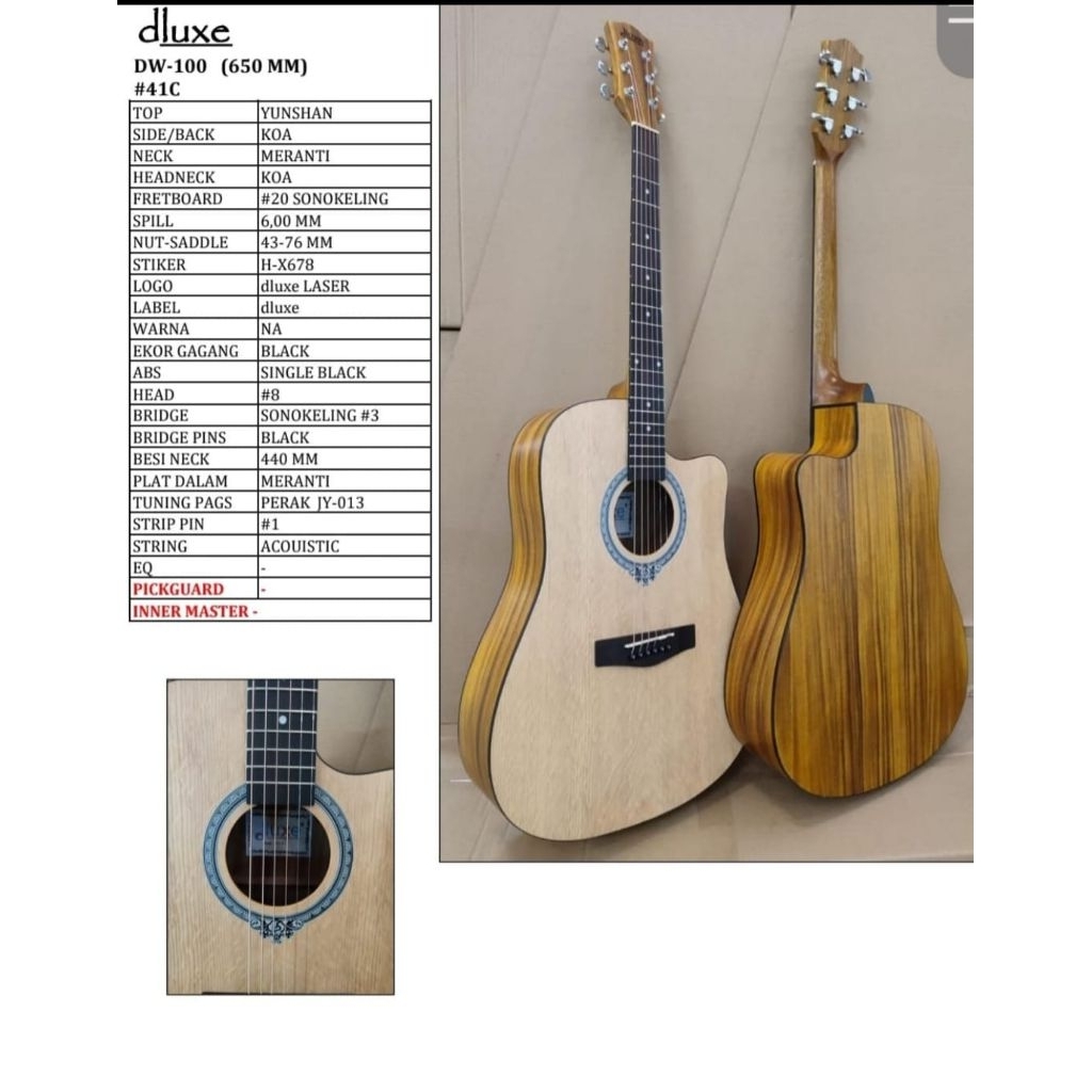 Gitar Akustik Original Dluxe ukuran Jumbo Model Cutway Tipe DW-110 (Bisa Pasang pream)