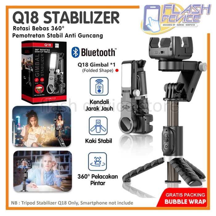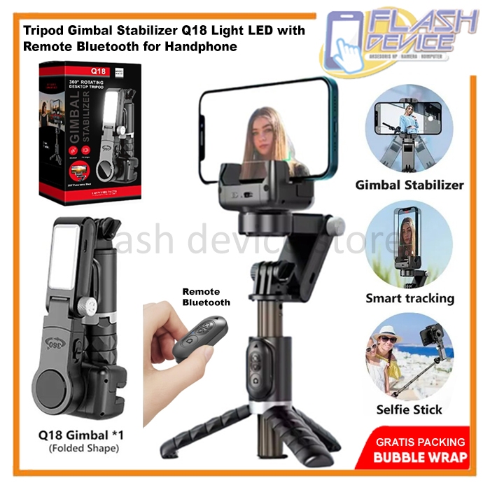 Tripod Gimbal Stabilizer Q18 Smart Tracking Light Led With Remote Bluetooth For Handphone