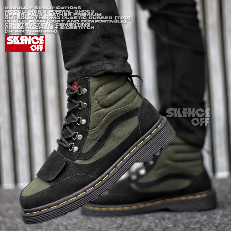 Sepatu Pantofel Boots Docmart Hitam Pria Silence Off - Kubo Leopard
