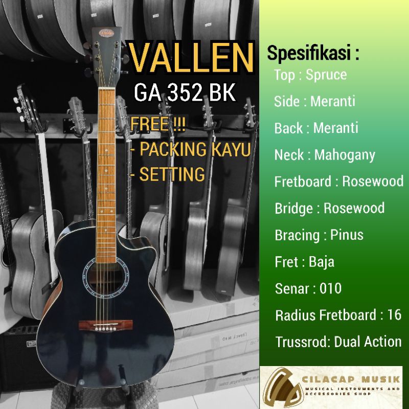 GITAR AKUSTIK VALLEN GA 352 ORIGINAL GITAR AKUSTIK ELEKTRIK T0P SPRUCE