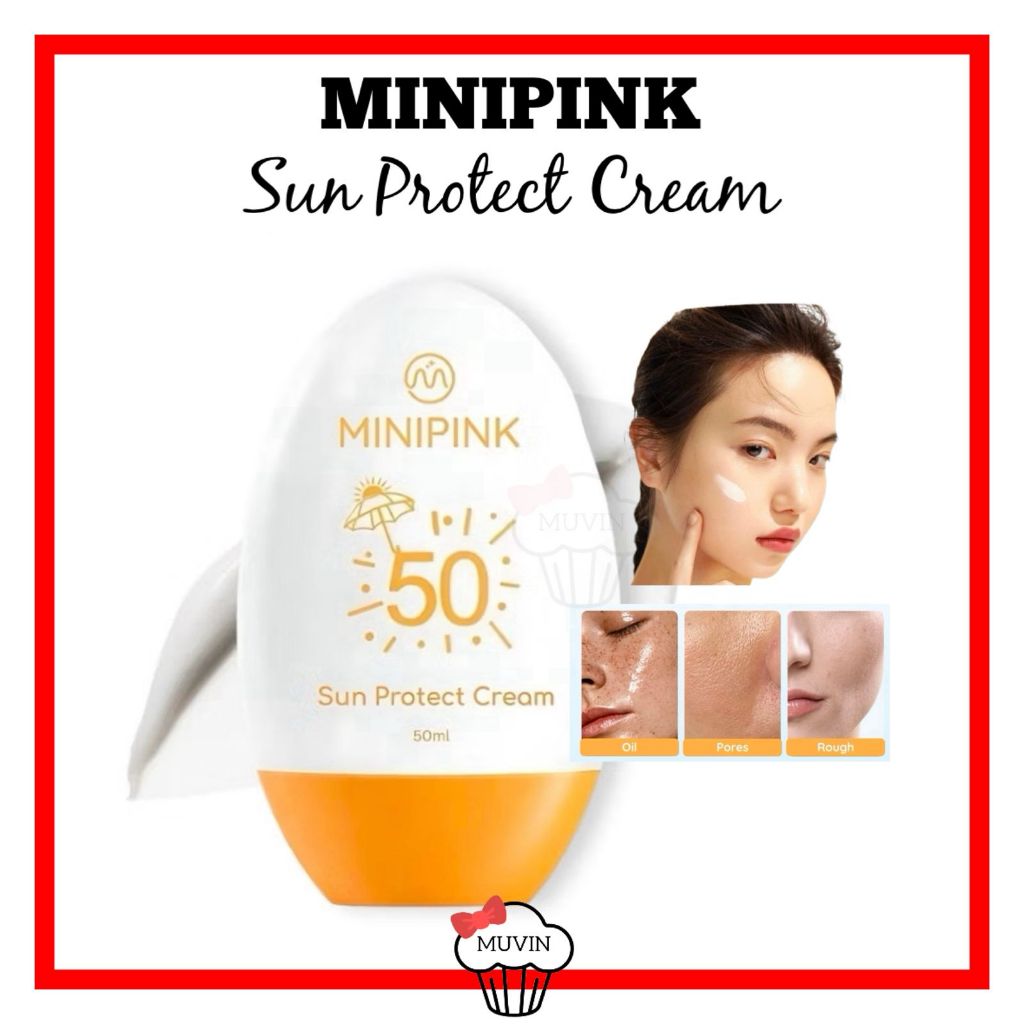[BPOM] MINIPINK Sun Protect Cream SPF 50 Sun Screen 55g Wajah Tahan PA+++ 12 Jam Egg Sunblock MP063