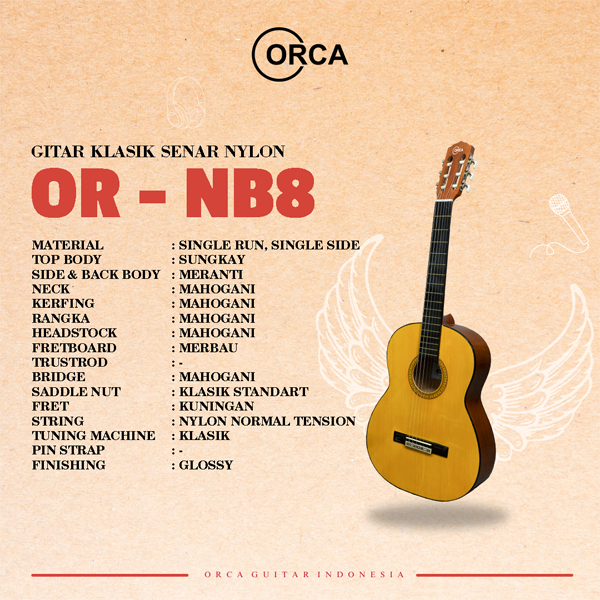 ORCA Gitar Klasik OR - NB8 Senar Nylon Guitar