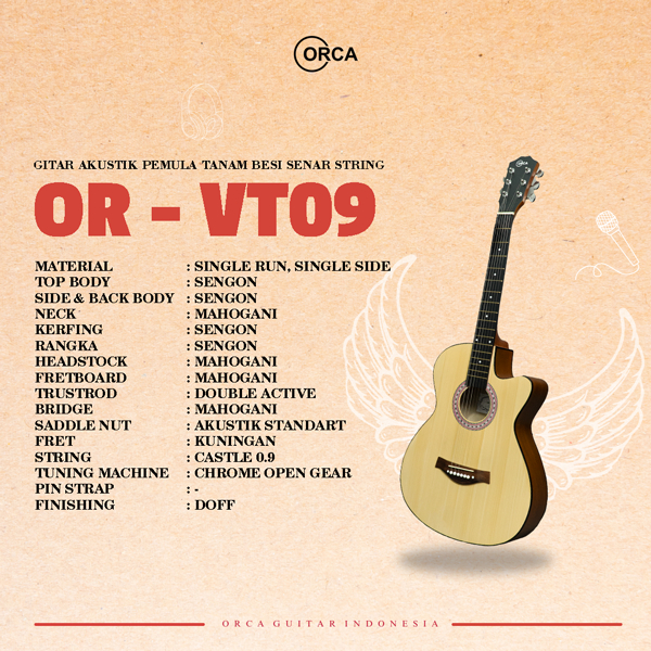 ORCA Gitar Akustik Pemula Tanam Besi OR - VT09 Senar String Guitar