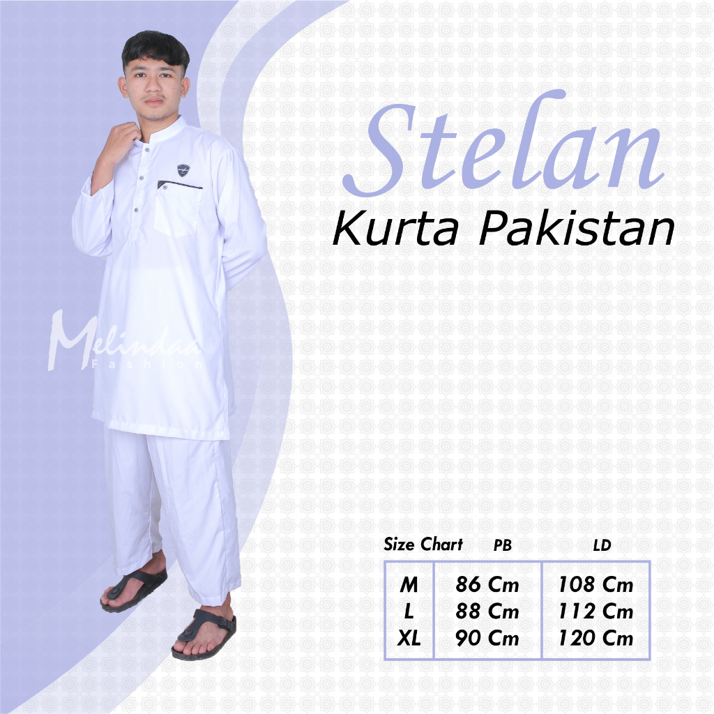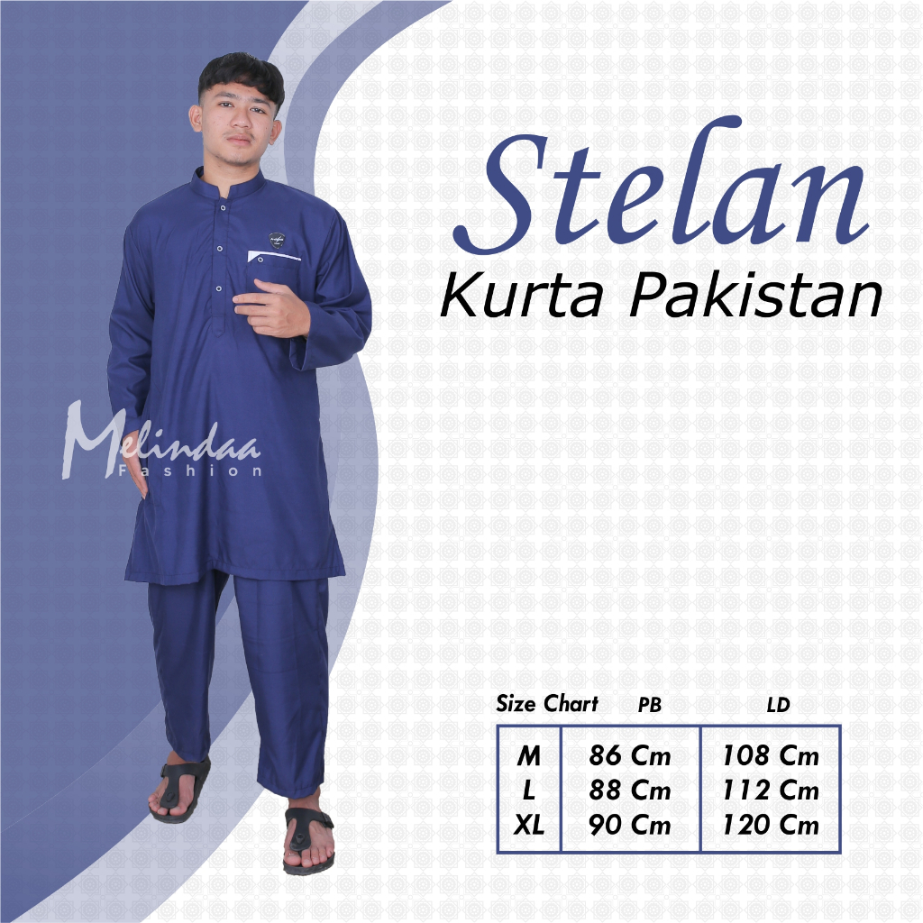 Baju Koko Stelan Kurta Pakistan Pria Dewasa & Remaja - Oneset Baju Koko Muslim Lengan Panjang Kancing Strip dan Saku