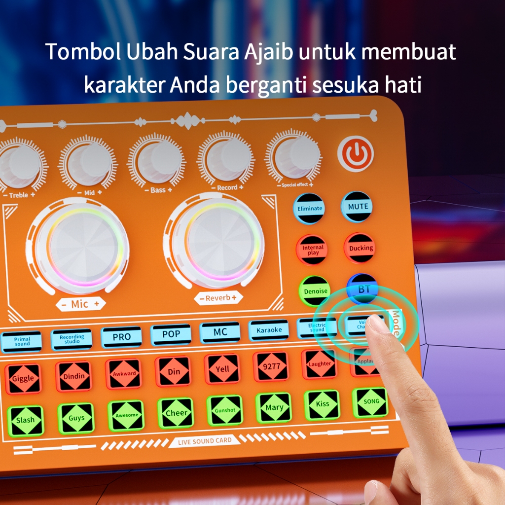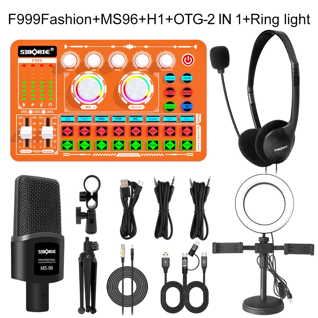 Siborie Soundcard F999Fashion+Ms96 Mic+H1 Headphpne+Ring Light+Otg-2In1 Paket Lengkap For Live Streaming Media