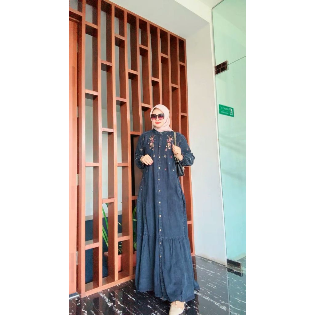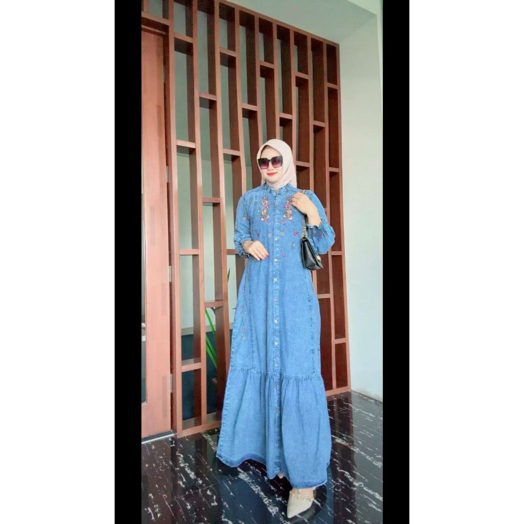 ZifanaSherly Gamis Jeans Jumbo Bordir Bunga Terbaru