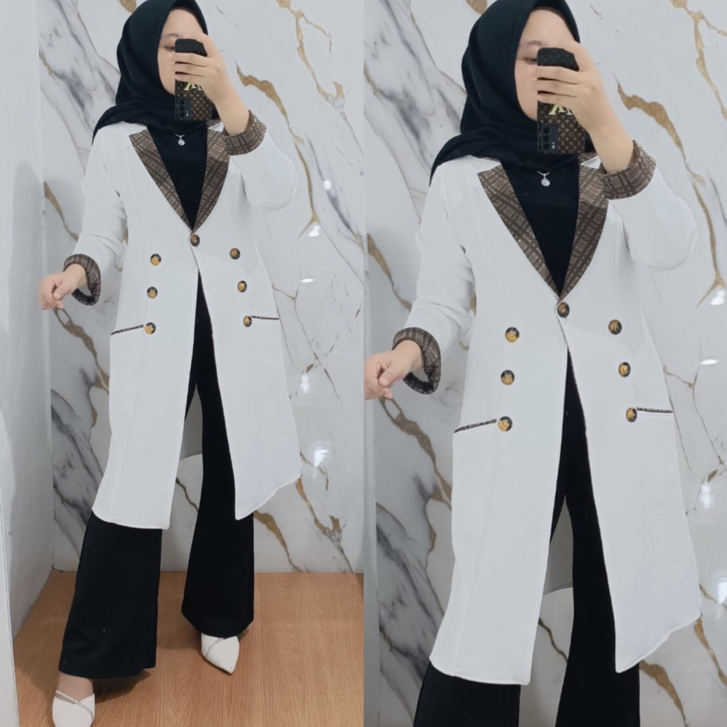 Long Nela Blazer Wanita Polos Scuba Viral