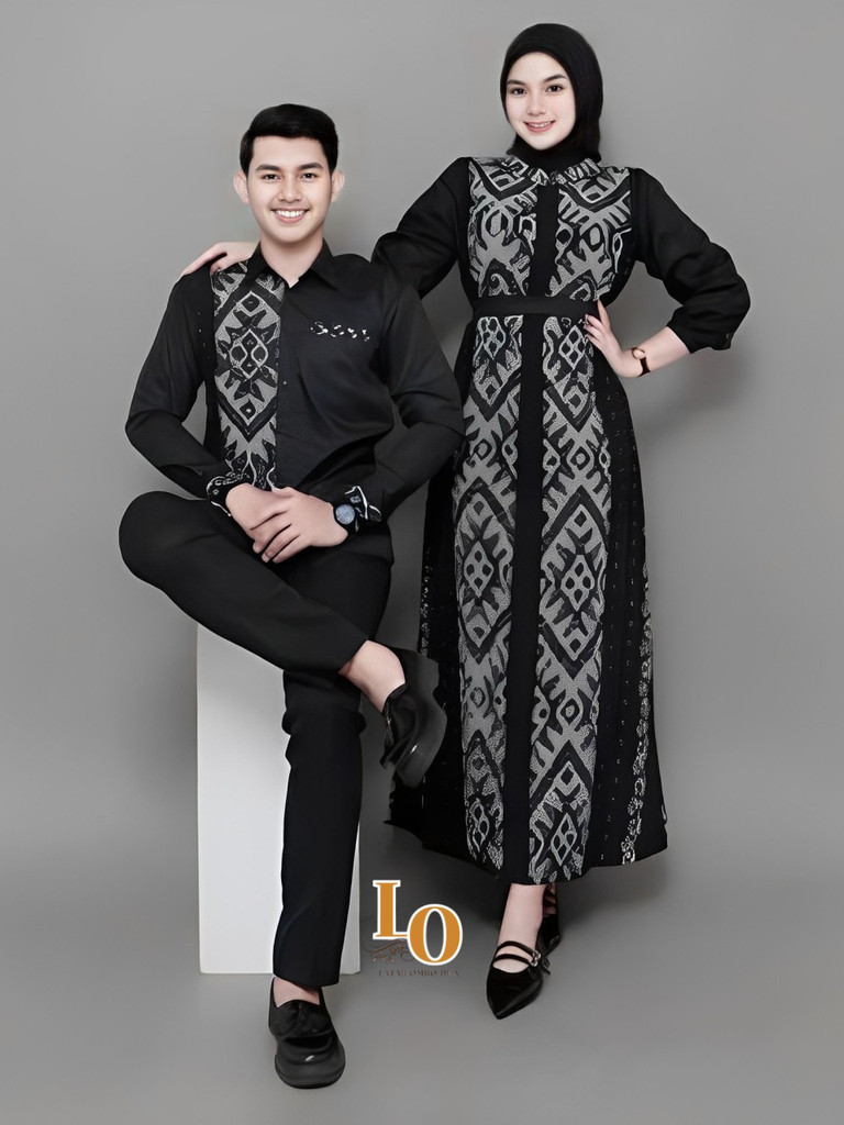 Baju Batik Tenun Couple Kondanggan Gamis Dres Hitam Wanita Kemeja Pria Formal Acara Resmi