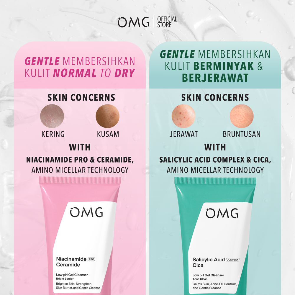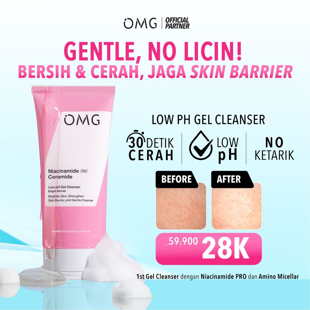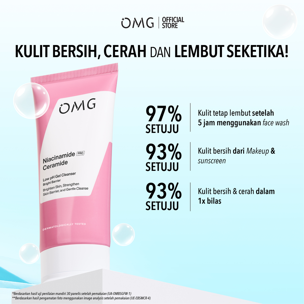 NEW OMG OH MY GLOW Niacinamide Ceramide Low pH Gel Cleanser 70 ml - Face Wash - Sabun Muka Cerah, Memperkuat Skin Barrier, Glowing