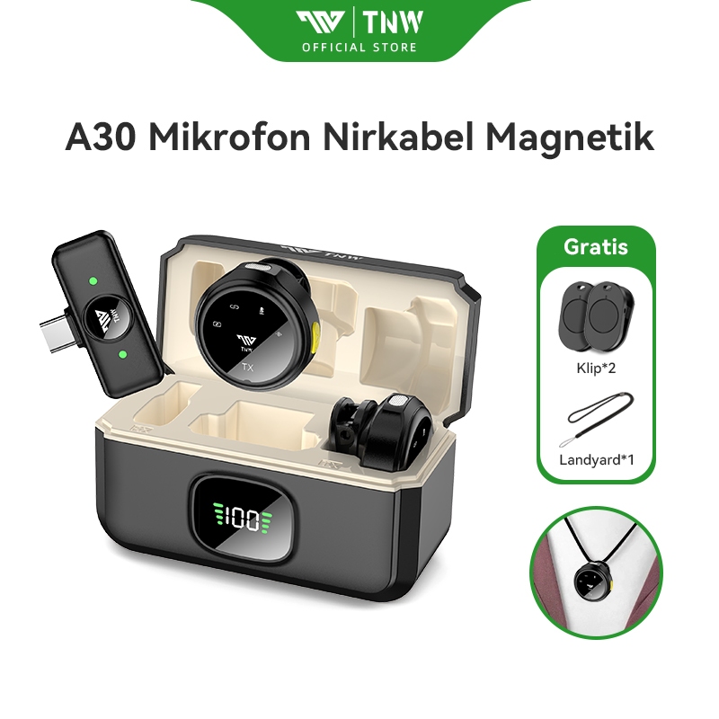 Tnw A30 Wireless Mikrofon Magnetic Lavalier Microphone Clip On Mic Plug & Play With Charging Case