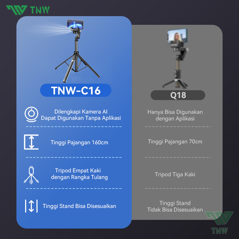 Tnw C16 Ai Gimbal Stabilizer Auto Face Tracking Tripod No App Tongsis Tripod Rotasi 360°Selfie Stick