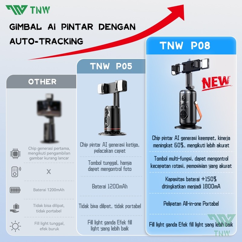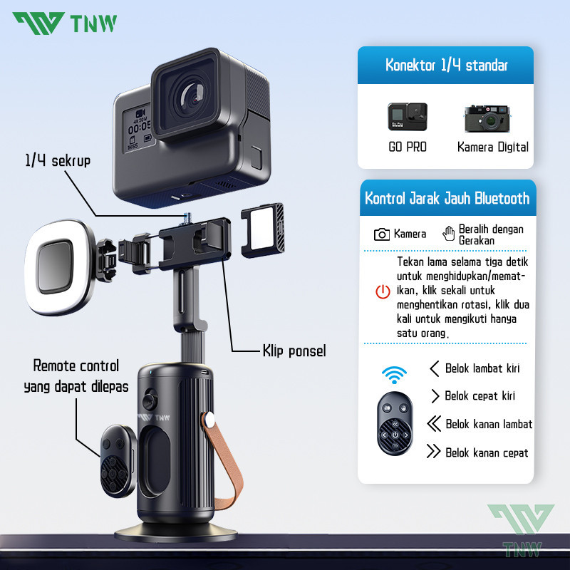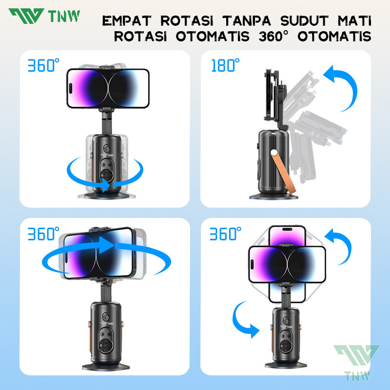 Tnw P08 Face Tracking Phone Stand Rotasi 360° Gimbal Stabilizer Gesture Control Remote Selfie Stick
