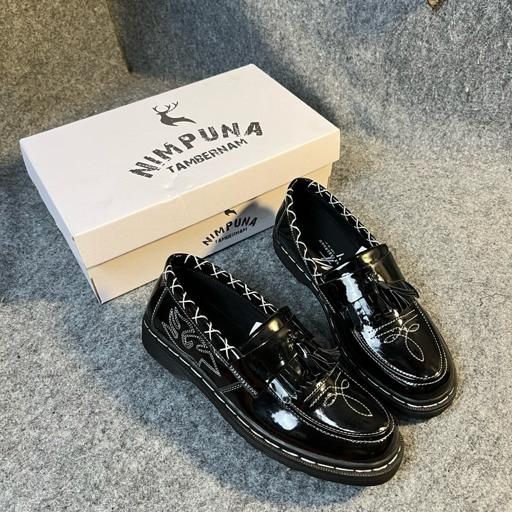 Sepatu Docmart Formal Penny Loafers Hitam Glossy Motif Pria