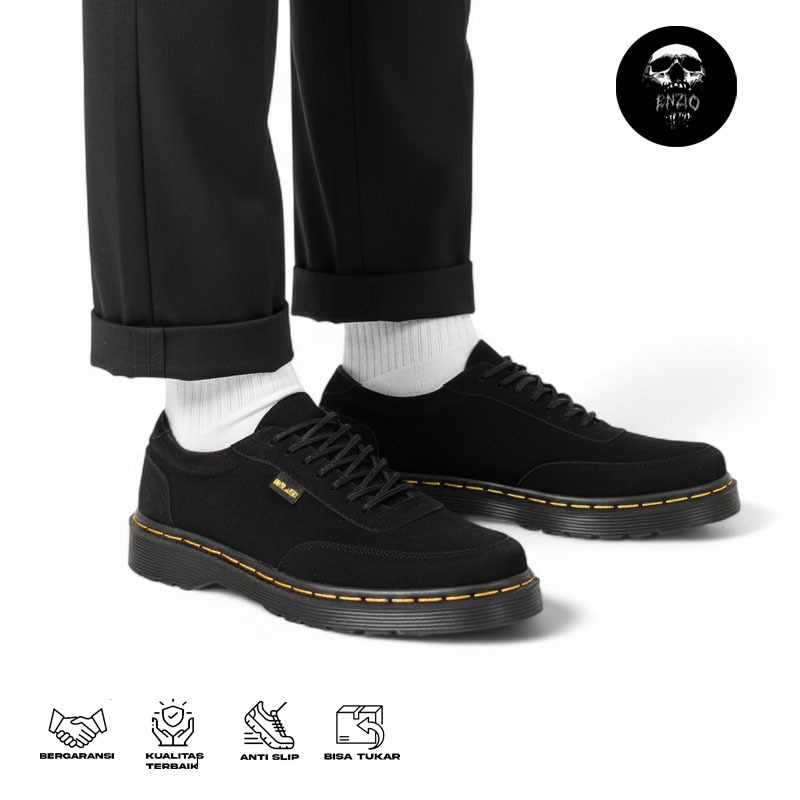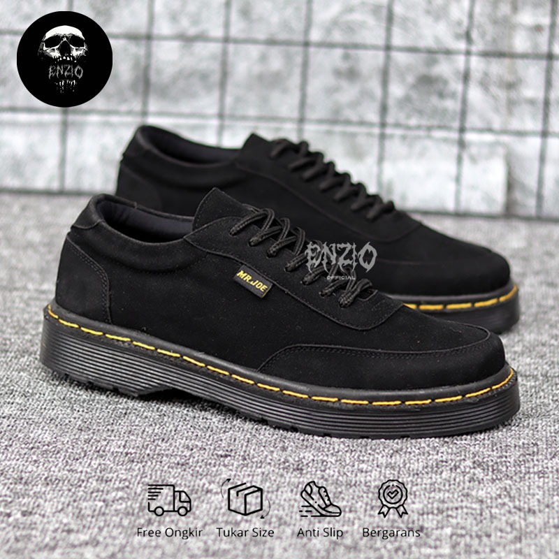 Enzio - Sepatu Oxford Pria Docmart Formal Casual Suede Kerja Pria Hitam