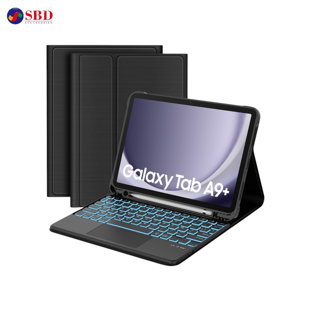 Ultra-Thin Smart Keyboard Case Flip Cover Leather Kulit Wireless Magnetic Keyboard Backlight Samsung Galaxy Tab A9 Plus