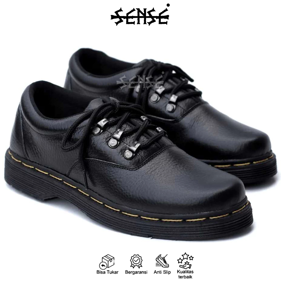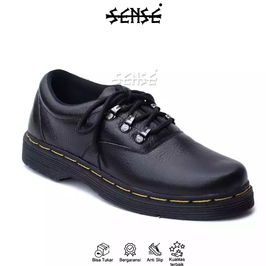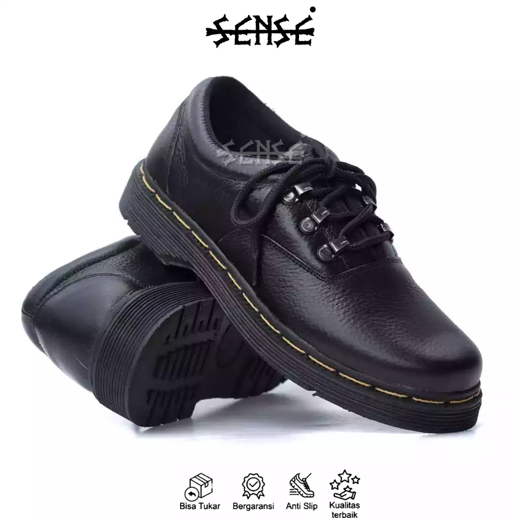 Sense - Sepatu Pantofel Formal Docmart Casual Kulit Asli Pria Kerja Hitam