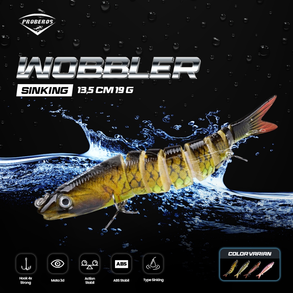 PROBEROS HS014 Umpan Pancing Casting Lure Swimbait 13.5cm 19g Sinking Buatan Bentuk Ikan Trout Wobbler Treble Hook 6# M