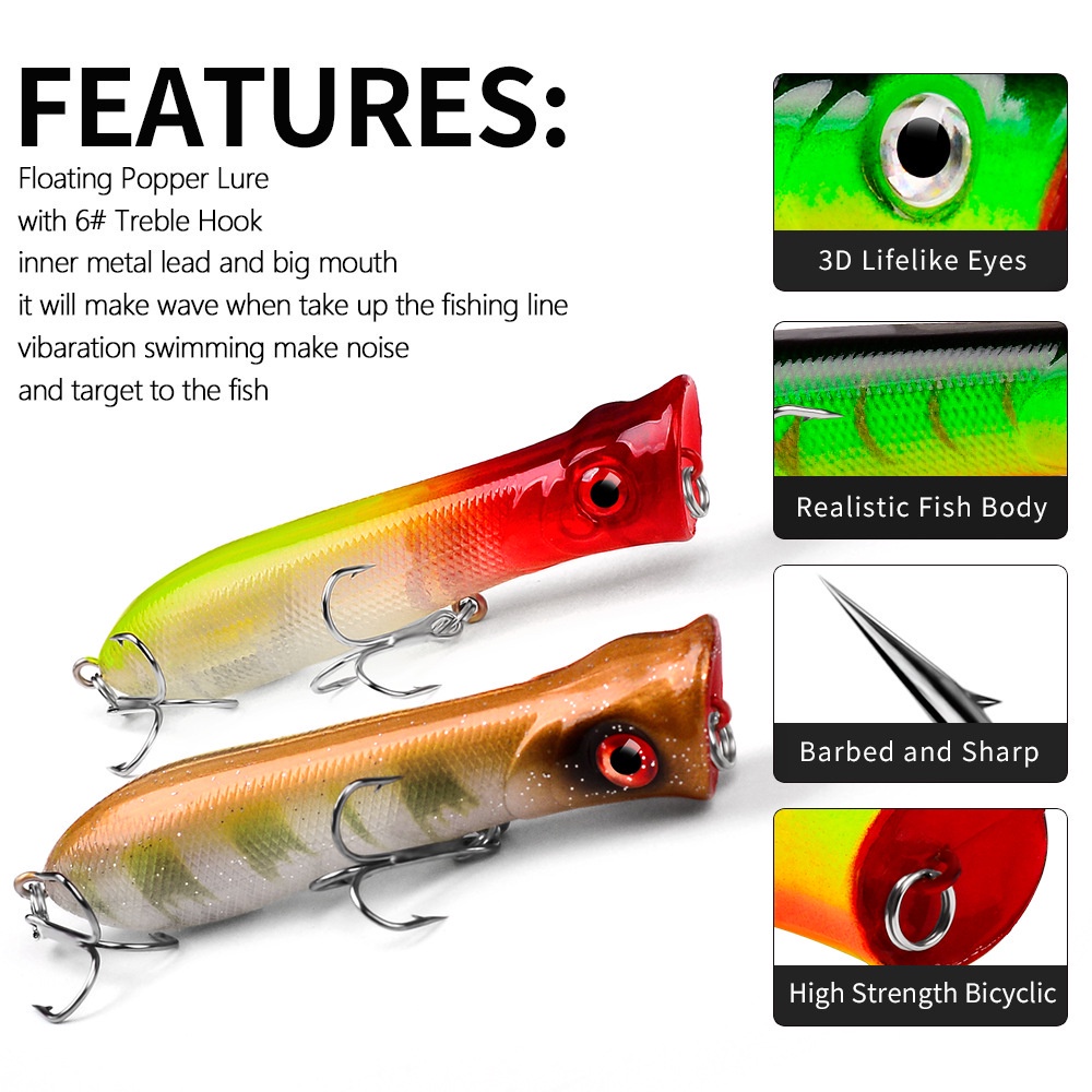 PROBEROS Umpan Pancing Lure Popper 8CM 12G Bionic DXP002 LP003