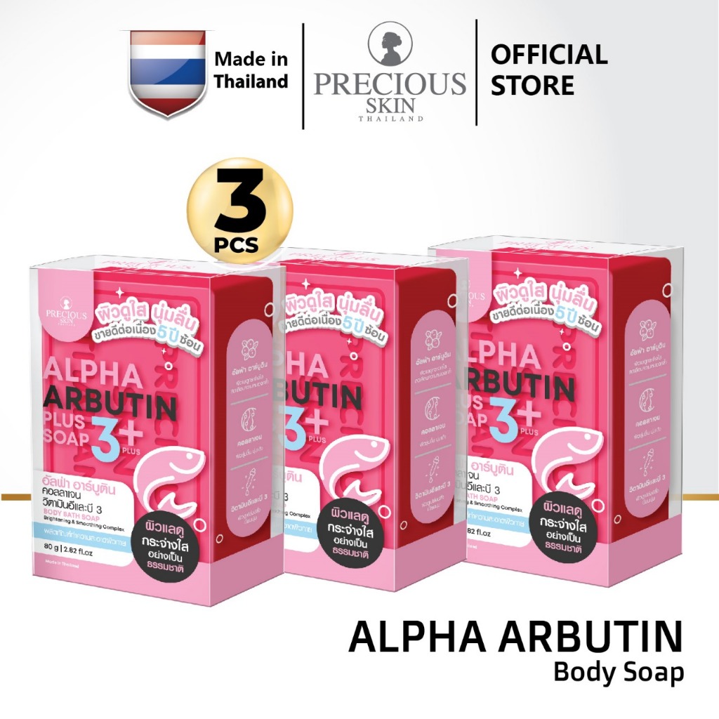 NEW TRIPLE PACK Precious Skin Thailand Alpha Arbutin 3 Plus Collagen Whitening Soap /Sabun/Sabun Batang/Sabun Pemutih Badan 80gr