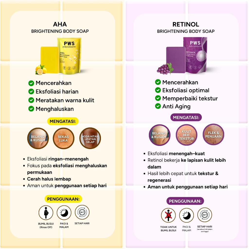 PERFECT WHITE AHA Brightening Body Soap 75gr + Free Foaming Net / Jaring | Sabun Batang Pencerah