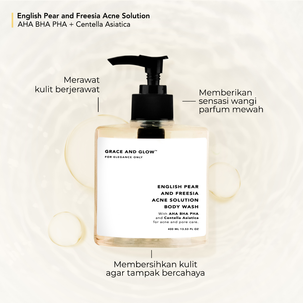 BUNDLE 2 PCS BODY WASH | Sabun Mandi Cair | Grace and Glow Brightening Solution + English Pear and Freesia Anti Acne Solution