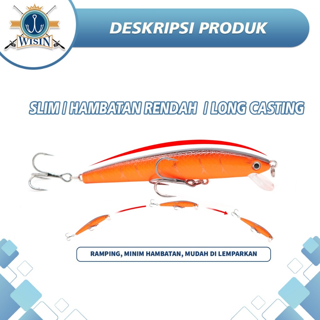 WISIN Lure Minnow Keras 8cm/5g 10cm/9g, Bebas Tenggelam, Umpan Plastik Berbunyi untuk Memancing
