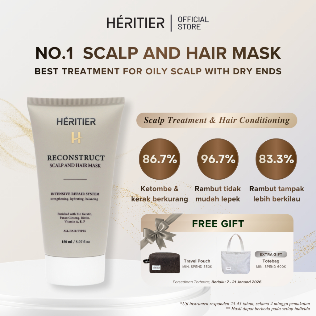 Heritier Reconstruct Scalp and Hair Mask 150ml | Rambut Bervolume, Mengurangi Lepek, Rontok, Ketombe