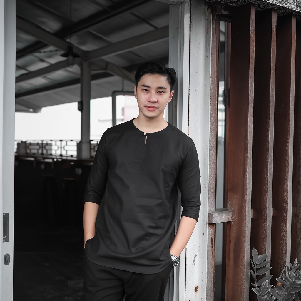 ANCSTR Kemeja Pria Muslim Koko Polos - Hanan Lengan 3/4
