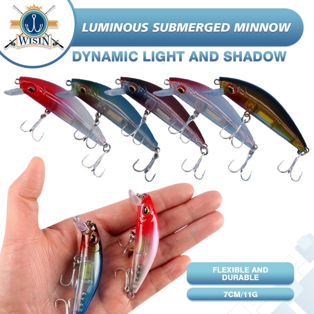 WISIN Minnow sinking Pancing kecil 11g/7cm Umpan Minnow Bercahaya Fish lure Bentuk ikan kecil