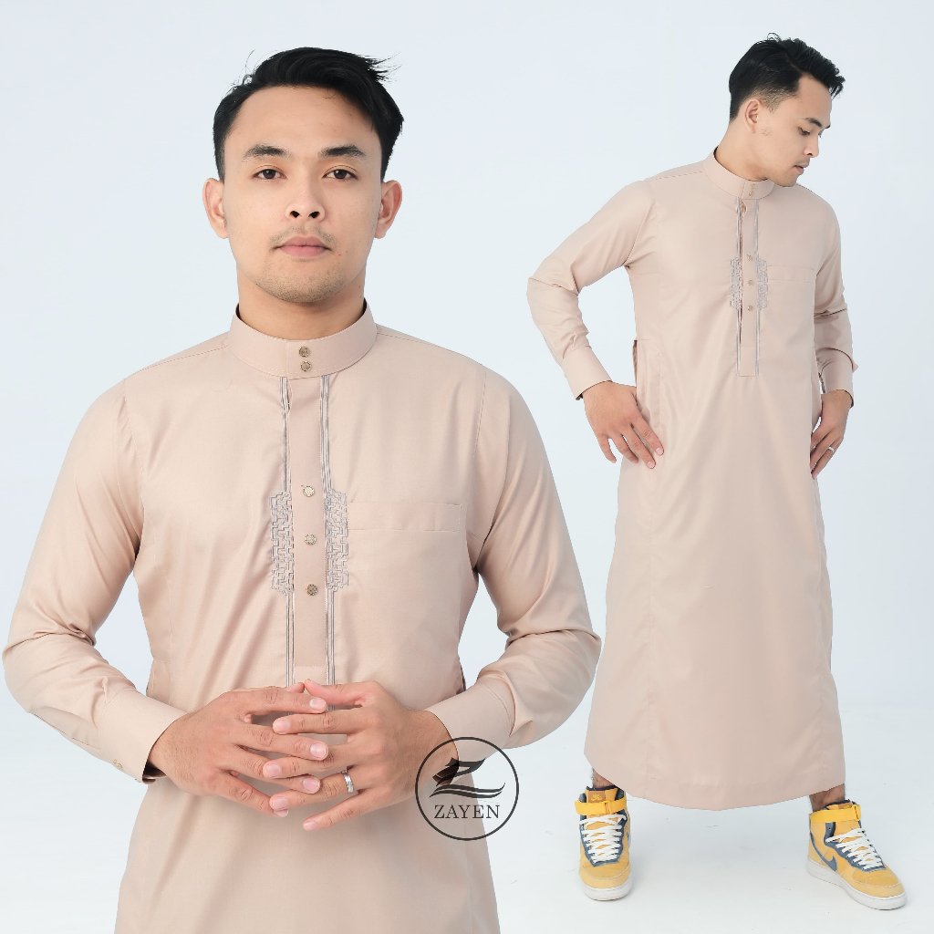 Jubah slimfit pria gamis pria jubah muslim pria bordir jubba saudi gamis alfaan tangan panjang manset hitam dewasa kancing/Model terbaru