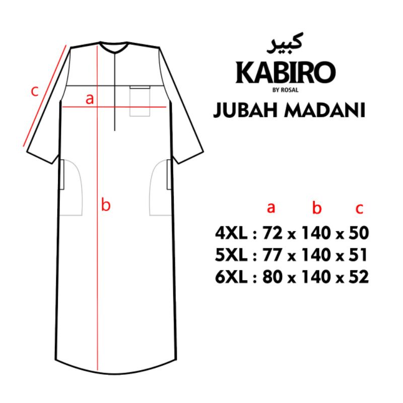 Jubah Madani Kabiro Lengan Panjang 7/8 Jumbo Big Size Jumbo Ukuran besar / Jubah Gamis Pria Rosal Kabiro 4XL 5XL 6XL XXXXL XXXXXL - Putih, Hitam, Navy, Army
