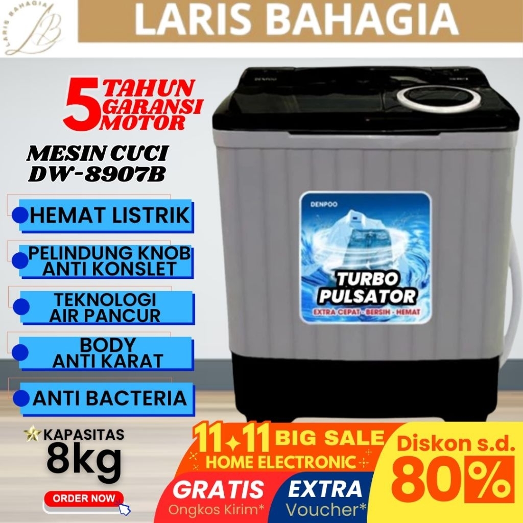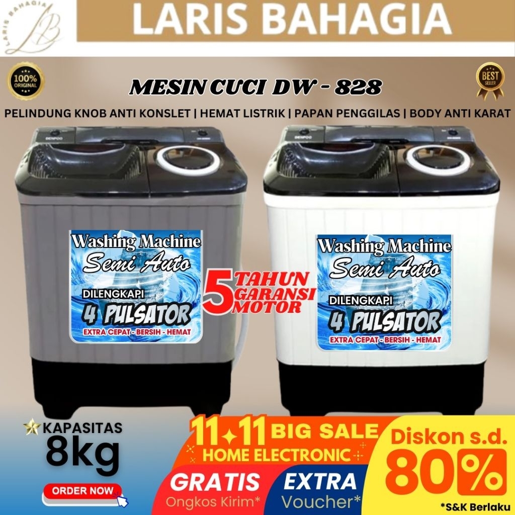 DENPOO Mesin Cuci 2 Tabung 8kg FREE ONGKIR Mesin Cuci TERLARIS
