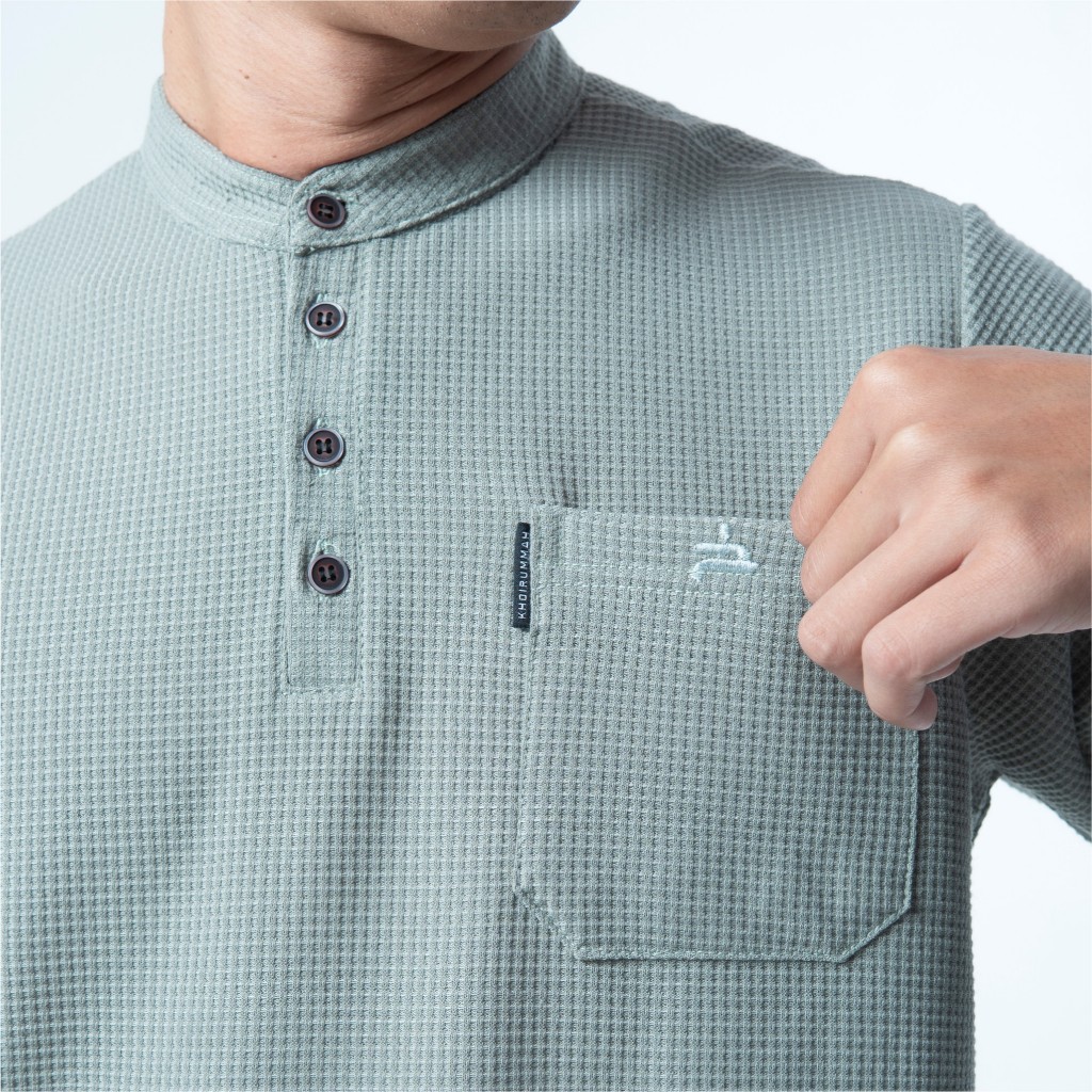 KHOIRUMMAH Kurta Zain Dewasa | Baju Muslim Pria Dewasa | Koko Polos | Kurta Lengan Panjang | Sage
