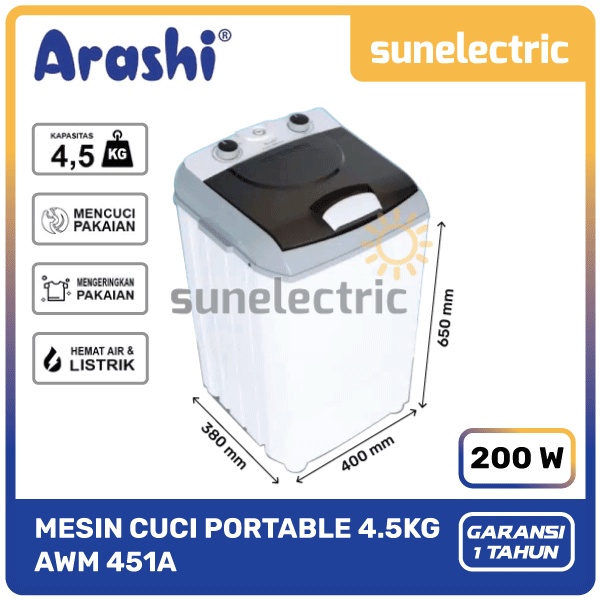 Arashi AWM-451A / AWM-452A / AWM 453A Mesin Cuci Portable 1 Tabung 4.5KG Top Loading