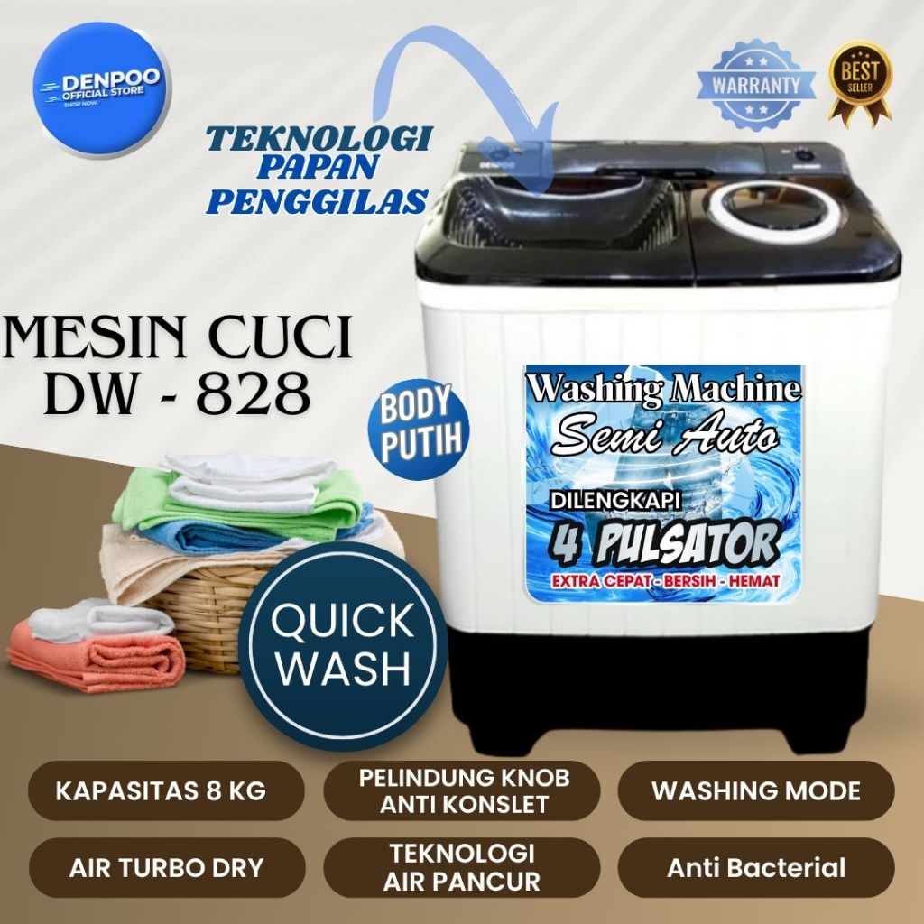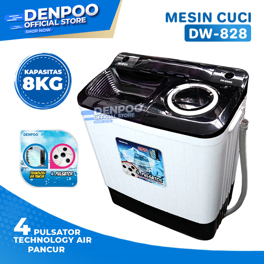Denpoo Mesin Cuci 2 Tabung DW 828 4P/ DW-976 Kapasitas 8 KG