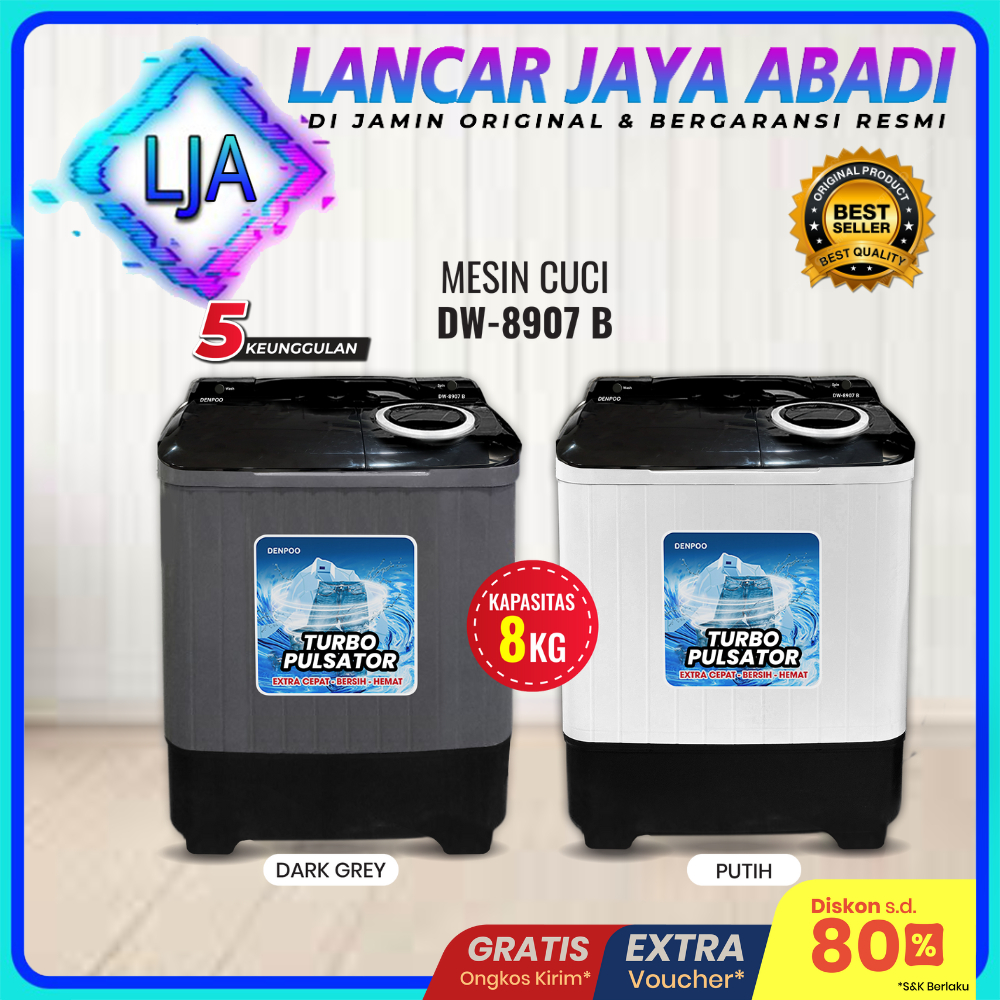 Mesin Cuci 2 Tabung 8 Kg DENPOO DW 89074P Body Fiber - DW 8907B