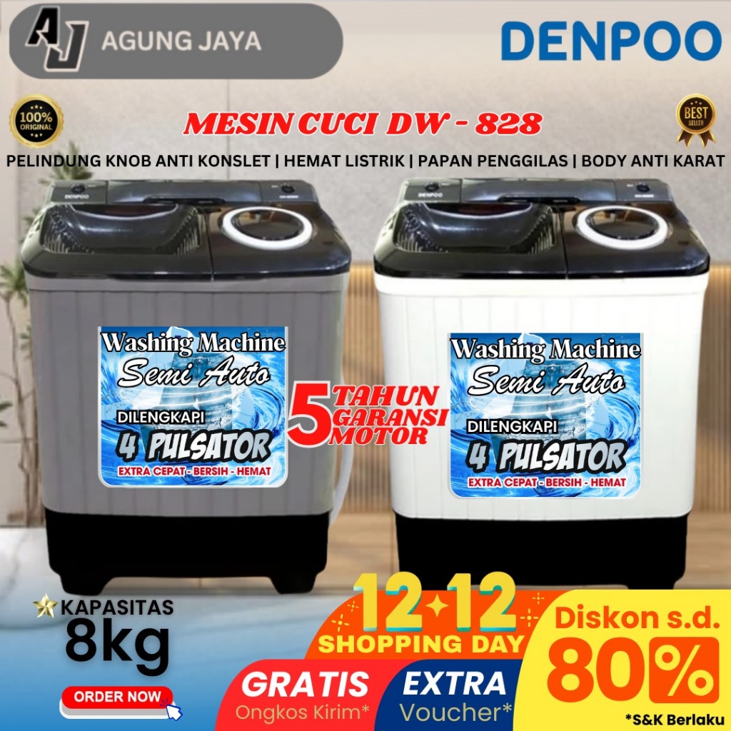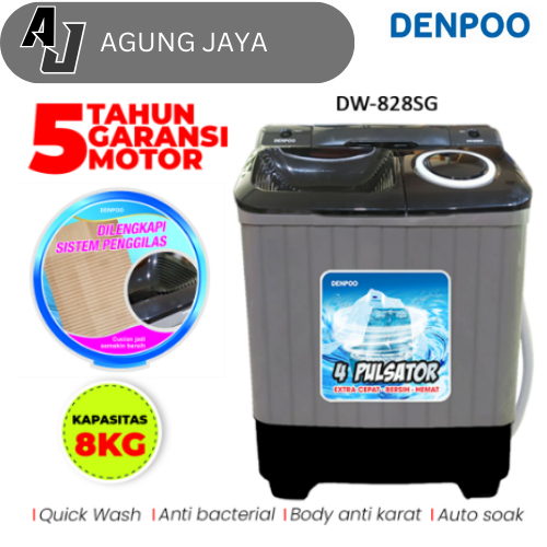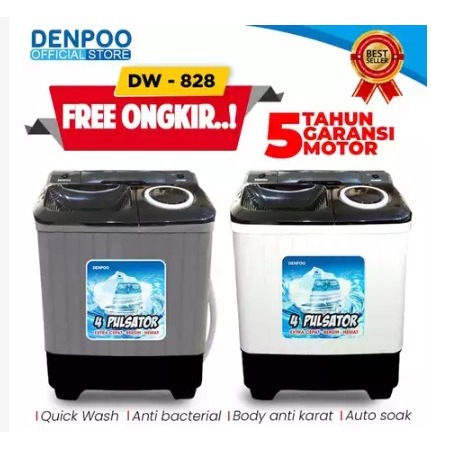 MESIN CUCI 2 TABUNG DENPOO DW 828 4P - 8907B - TERLARIS MESIN CUCI 2 TABUNG 4 PULSATOR FREE ONGKIR SEJABODETABEK(LIN