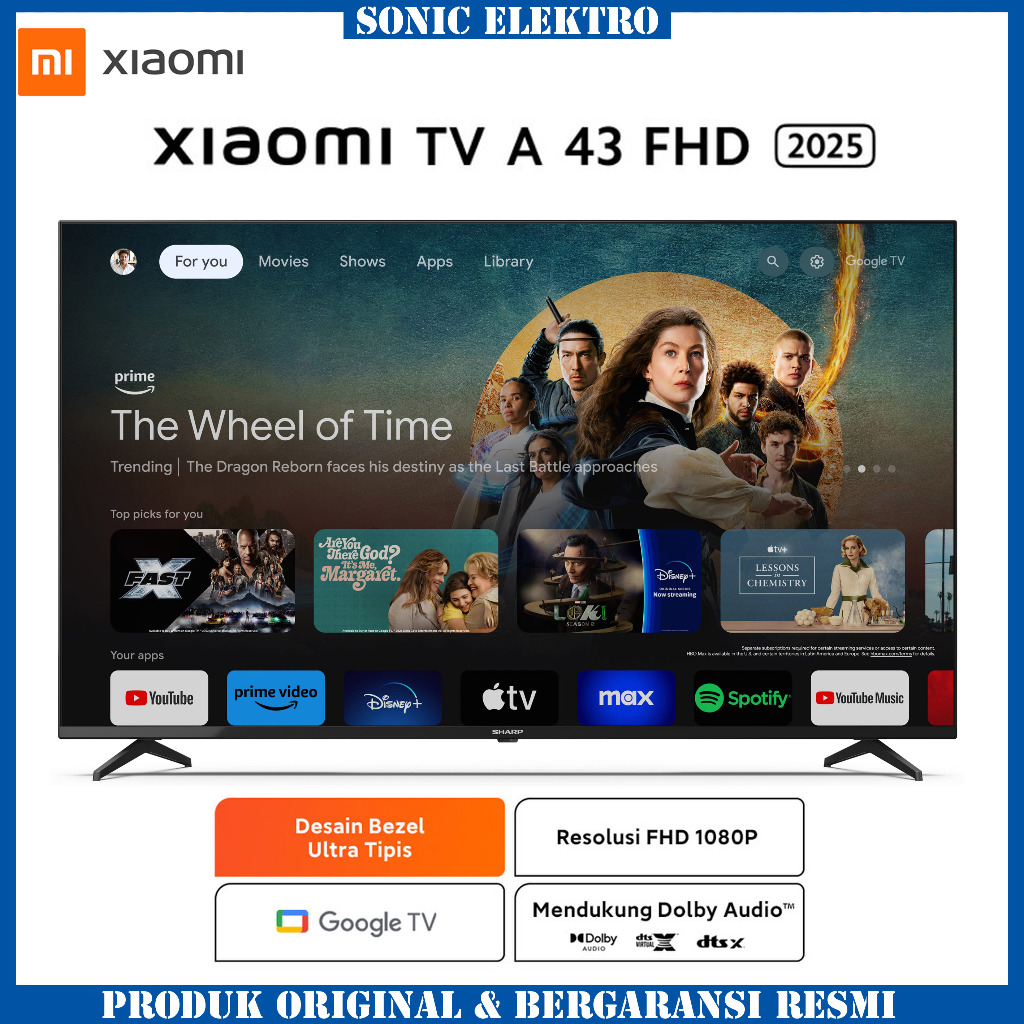 XIAOMI TV 43 INCH A SERIES - Google TV - Youtube/Netflix - Wifi - Dolby Audio - Bluetooth - Garansi