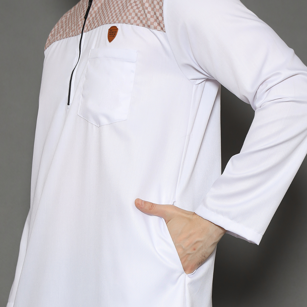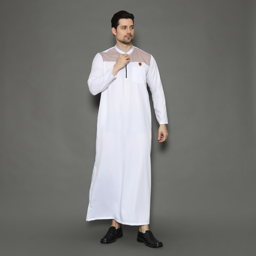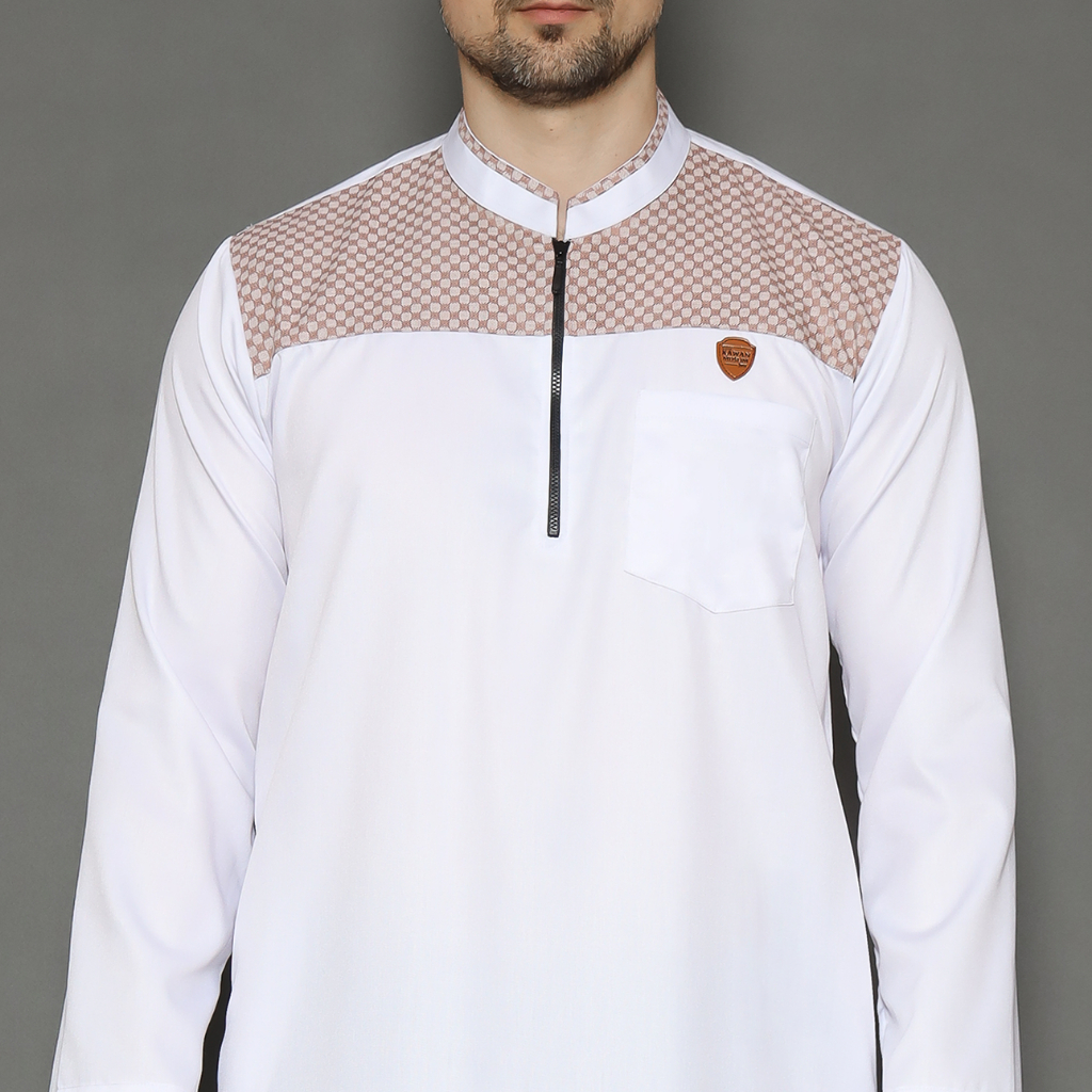 Kawan Muslim - Jubah Gamis Pria Dewasa Model Etnik Lengan Panjang Warna Putih Ukuran M Sampai Xxl