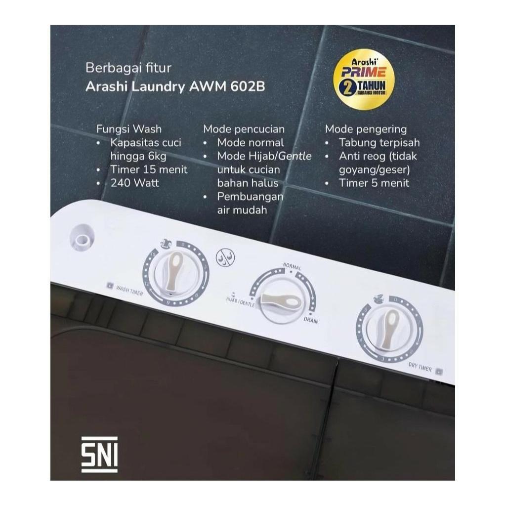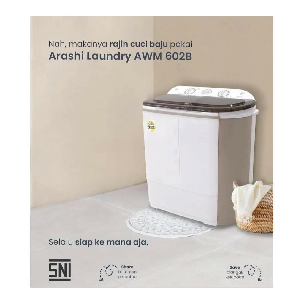 ARASHI MESIN CUCI 2 TABUNG OTOMATIS ARASHI AWM 602B / AWM 602 B KAPASITAS 6 KG