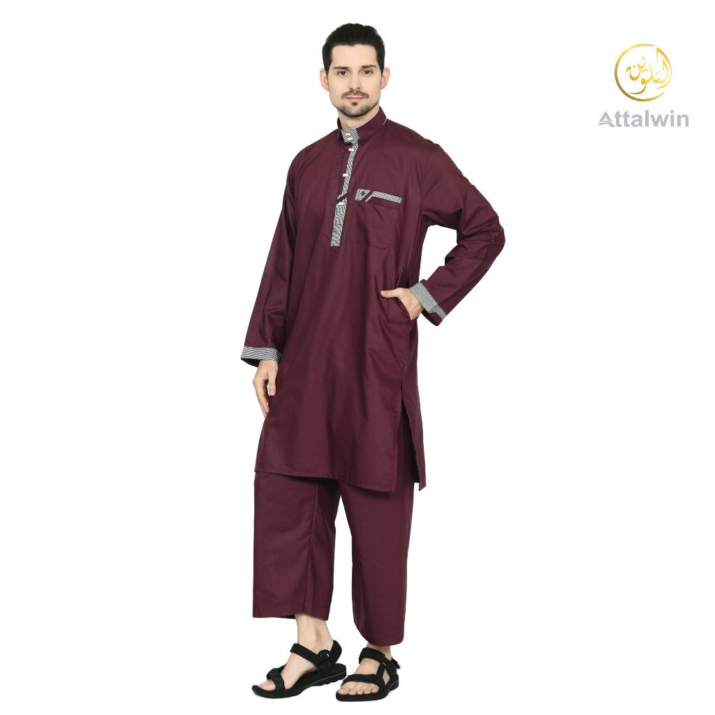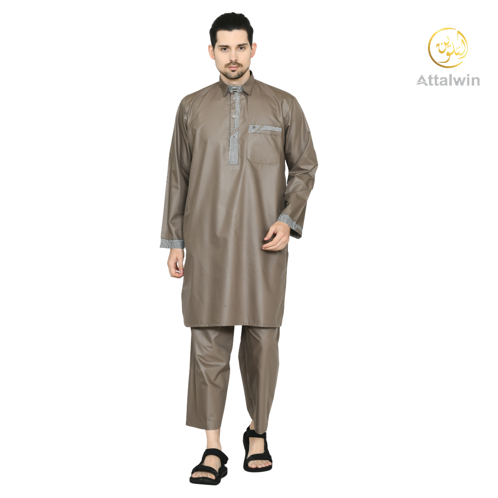 Attalwin - Gamis Jubah Pria Setelan Kurtah Umroh Haji Tanpa Manset SD053
