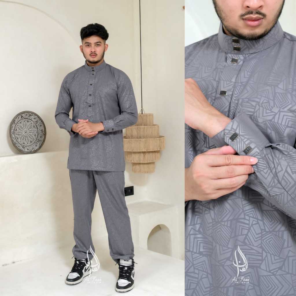 Baju Koko Setelan Pakistan pria motif embos Kemko Alzan Jasko Gamis Jubah Pria Muslim Model terbaru Alzan