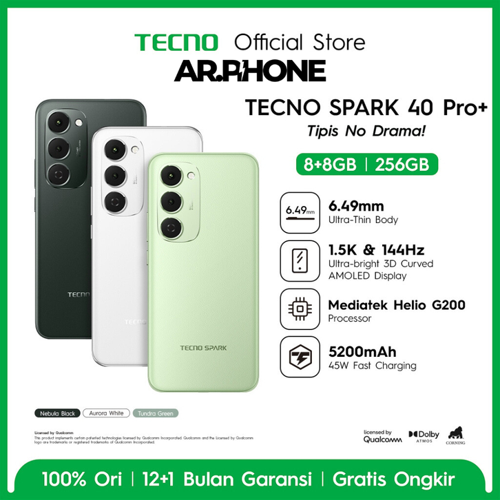 TECNO SPARK 40 Pro+ - 8+8GB*/256GB, Mediatek Helio G200, 30W Wireless Charge, 1.5K & 144Hz 3D Curved AMOLED Display, Ult