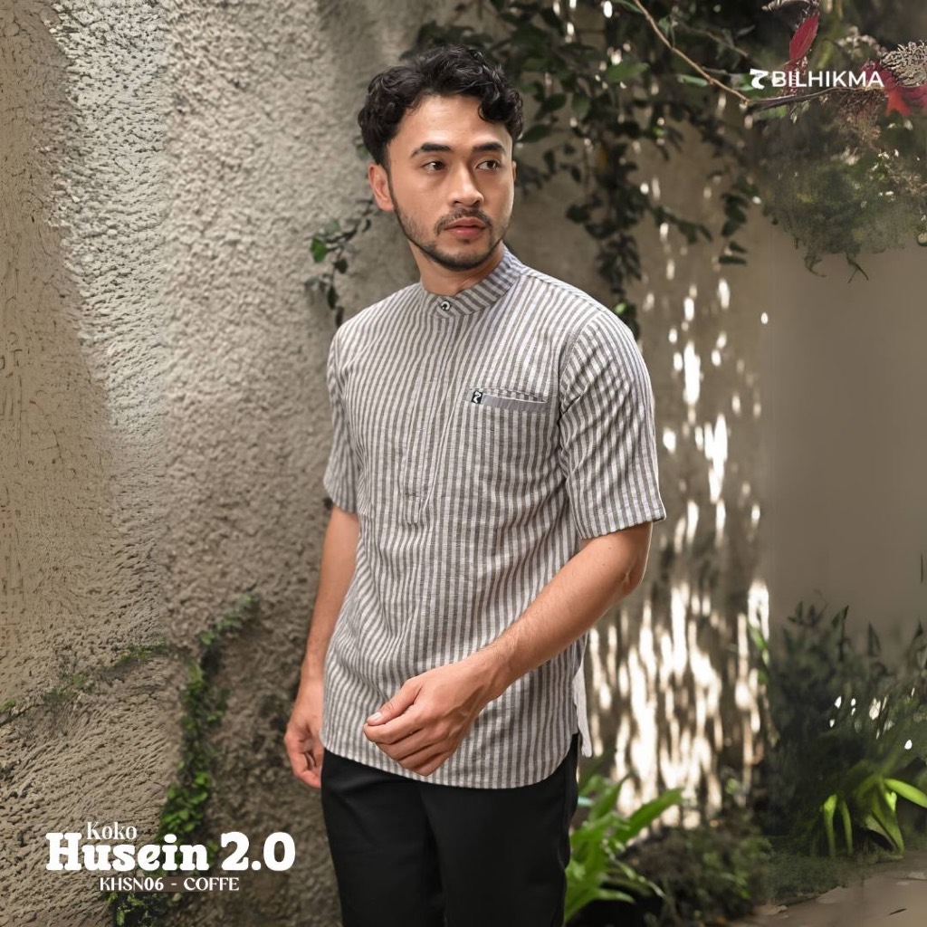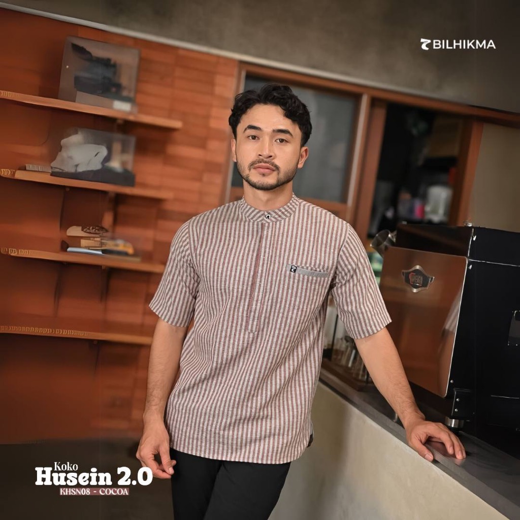BILHIKMA - BAJU KOKO TANGAN PENDEK MOTIF SALUR REMAJA DEWASA HUSEIN 2.0