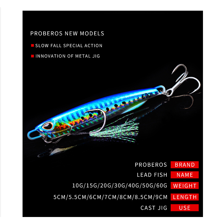 PROBEROS - Umpan Pancing Metal Jig Bercahaya Treble Hook 30/40/50/60G MJ068