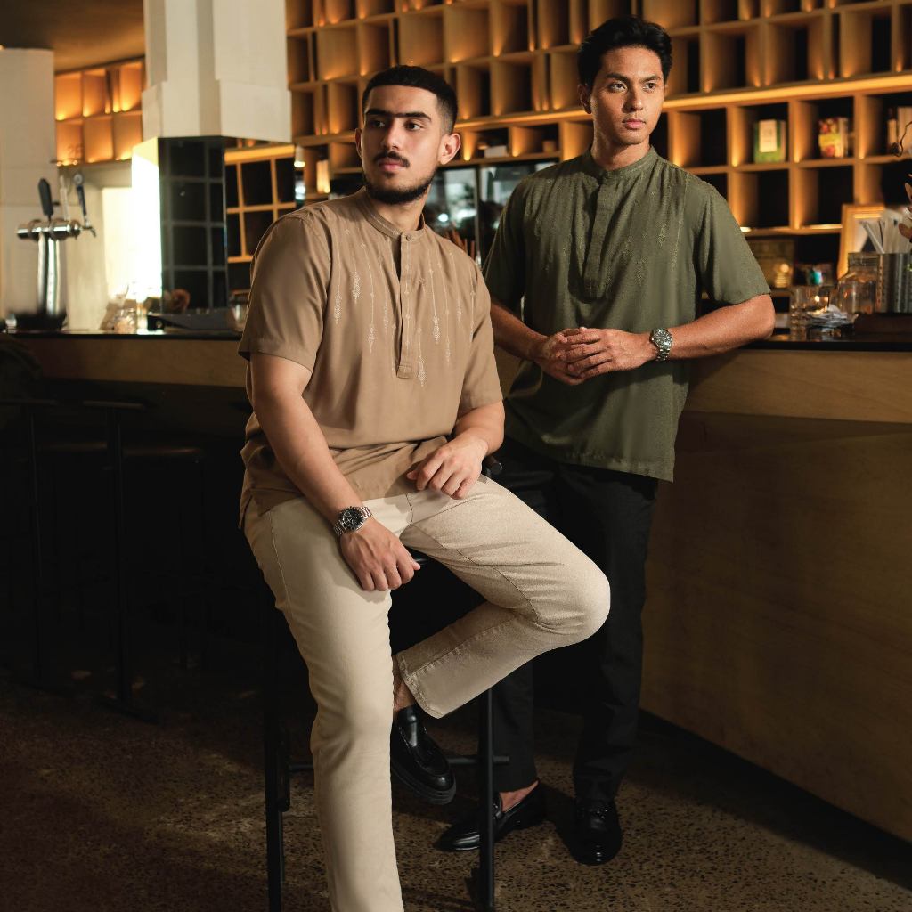 CUTOFF Rayyan Kemeja Koko Cotton Rayon Kasual Bordir Basic Polos Pria Lengan Pendek