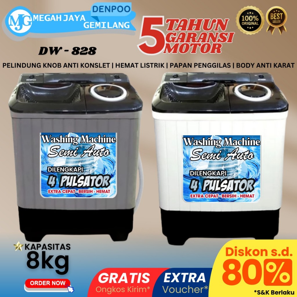 Mesin Cuci 2 Tabung 8kg Denpoo- DW 8907 TERLARIS FREE ONGKIR